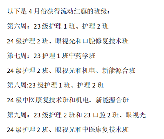每一面流动红旗的背后,都是无数个努力奋斗的身影,是师生们共同付出的心血与汗水。它不仅仅是一面旗帜,更是班级荣誉的象征,是团结、进取、拼搏精神的体现。希望获得流动红旗的班级能够再接再厉,继续发挥模范带头作用;暂时未获得的班级也不要气馁,以他们为榜样,从自身做起,从小事做起,不断提升班级的整体水平。在未来的日子里,让我们共同努力,让校园的每一个角落都充满蓬勃的朝气与活力,共同书写学校更加辉煌的篇章!