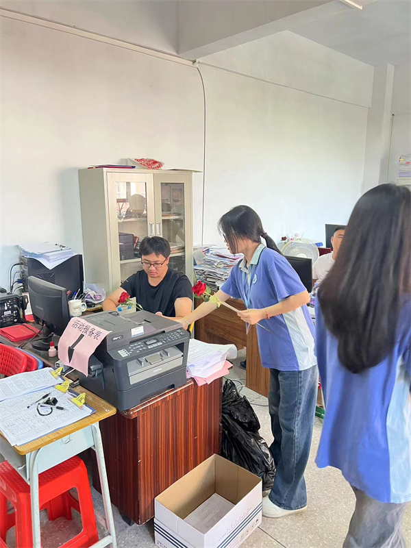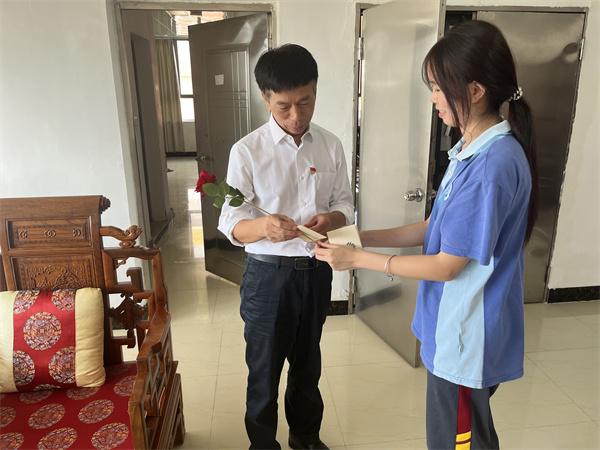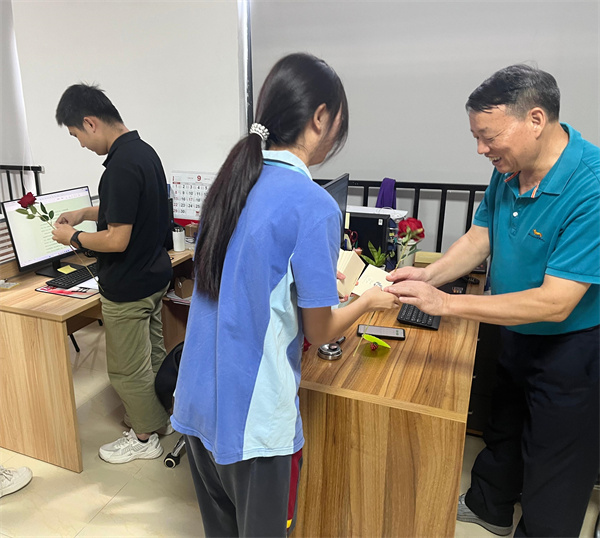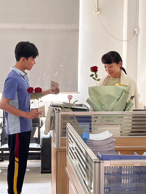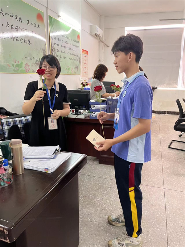 学生代表将一束束饱含情意的鲜花与贺卡,连同真挚的“老师,教师节快乐!”,一同传递给敬爱的老师们。一束束鲜花,映红了老师们的脸庞;一声声祝福,温暖了老师们的心房。