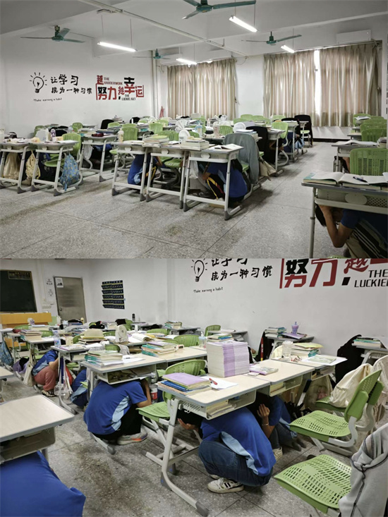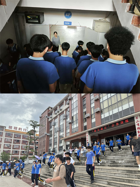 11日下午,随着警报声骤然响起,应急演练正式启动。教室内学生迅速抱头蹲于课桌下避险,待警报声转换为疏散指令后,在班主任与楼层引导员的指挥下,按预定路线有序撤离教学楼,仅用时3分20秒全部安全集结至孔子广场。整个过程中,师生配合默契,疏散秩序井然,展现出扎实的应急素养。