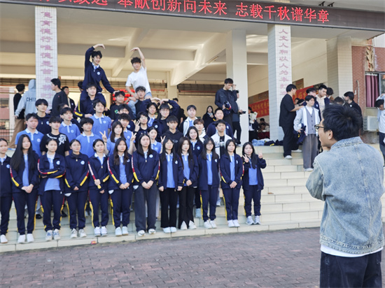拍摄现场秩序井然、温情满溢。同学们列队而立,挺拔的身姿彰显着华磐学子的蓬勃朝气,脸上的笑容既藏着对校园生活的眷恋,更满含对未来的憧憬与期许。随着摄影师“3、2、1”的倒计时,大家齐声喊出“茄子”,一张张灿烂的笑脸被永久定格在镜头中,将深厚的师生情、真挚的同窗谊与三年来的校园记忆深深镌刻。