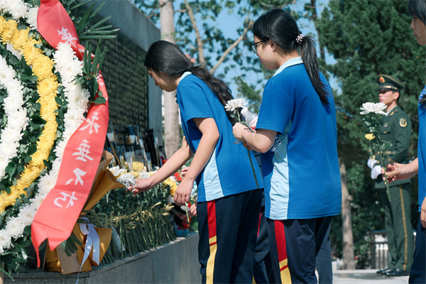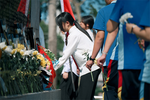 上午8时,同学们统一穿着校服、佩戴团徽,在学校南门集合签到,乘坐大巴有序前往增城革命烈士纪念碑。祭扫仪式庄重肃穆,全体人员整齐肃立。校长曹军副教授带领师生代表缓步上前,向革命烈士敬献鲜花、整理缎带,全体师生低头默哀致敬,以最诚挚的敬意深切追思先烈们的英勇事迹与奉献精神。学生代表在发言中抒发对革命先烈的崇敬与缅怀,表达了新时代青年传承红色血脉、矢志奋斗报国的坚定决心。