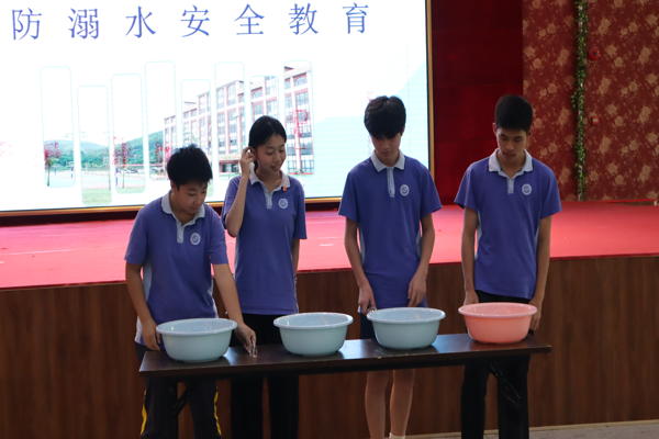 林文丰副校长通过讲述具体案例,将溺水原因、溺水的可怕结果和如何施救融入真实的溺水事故中,采取与学生互动的方式向大家介绍溺水的严重危害,让同学们在聆听中受到震撼。之后他向同学展示了水中自救和救助他人的方法,在面对溺水情况时,首先要保持冷静,避免惊慌;其次要正确施救,避免盲目行动带来更大风险。活动中,现场几位同学还上台进行了体验式防溺水模拟演练,通过分享他们在模拟“溺水”时所体验到的呼吸困难和恐惧,让其他同学深刻体会到溺水的危险,直观体会到预防溺水的重要性。