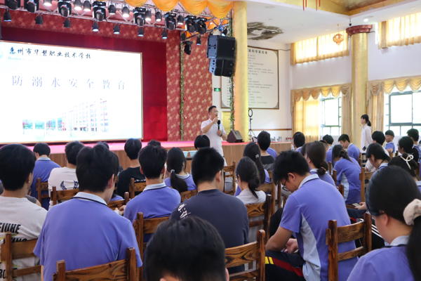 夏季已至,随着全国各地气温逐渐上升,溺水又将进入高发季。为切实加强防溺水安全教育,有效防止溺水事件的发生,全面提高青少年及家长的安全防范意识,惠州市华磐职业技术学校于近期开展了“珍爱生命 预防溺水”主题宣传教育活动。常务副校长李刚,班主任和学生代表参加了本次教育活动,林文丰副校长主持。