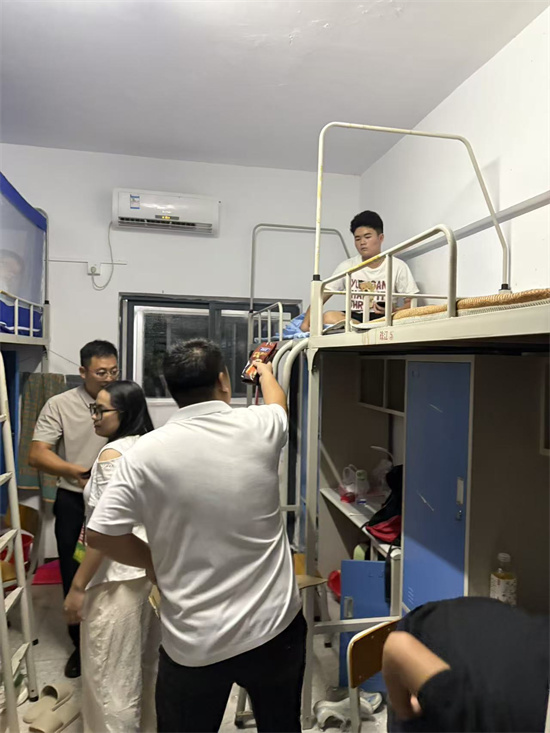 副校长李刚副教授一行每到一处都与同学们亲切交谈,详细询问他们的家乡、专业选择、入住感受及生活需求。"宿舍设施是否齐全?""饮食是否习惯?""对未来学习生活有什么规划?"校领导耐心倾听新生心声,针对同学们提出的食堂菜品、校园网络、学习资源等问题现场办公,要求相关部门立即跟进解决,并叮嘱新生遇到困难随时联系班主任或后勤服务部门。