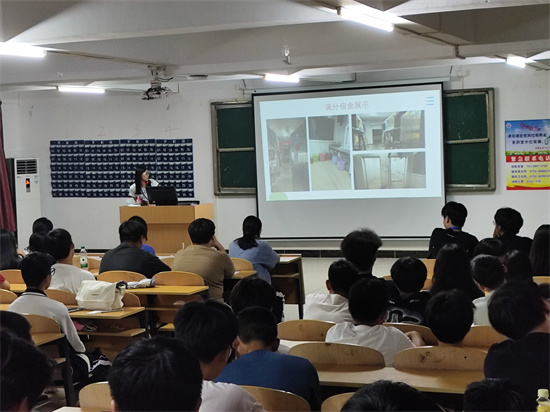 随后,学生会综合实践部干部针对“宿舍卫生内务整理标准”进行了细致讲解,结合日常检查中的常见问题,通过图文并茂的课件展示,将抽象标准转化为具体可参照的“标尺”,帮助同学们清晰掌握宿舍卫生内务整理的要点与规范。会议号召同学们要规范作息时间,保障睡眠,严格按照内务标准,落实卫生制度,遵守相关安全规定,杜绝违规用电和使用违禁物品。