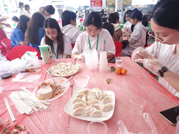 活动当天,学校食堂暖意融融、喜气洋洋,同学们围坐桌前,分工明确、默契协作。和面、擀皮、调馅、包饺子,各个环节井然有序。有的同学手法娴熟,指尖翻飞间,元宝形、月牙形的饺子便整齐罗列;初次尝试的同学则在同伴的指导下慢慢摸索,包出的饺子虽造型别致、形态各异,却满满都是创意与童趣。案板上的饺子越堆越高,食堂内欢声笑语此起彼伏,面团的清香混着同窗温情,绘就冬日校园里最动人的图景。