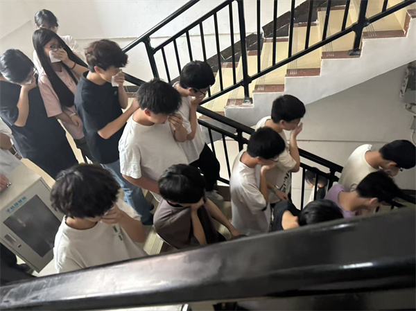 演练启动前,各班主任提前召开主题班会,通过典型案例讲解、疏散路线演示等方式,向新生细致传授火灾逃生要点与安全注意事项,确保每位学生熟悉演练流程、掌握自救技巧。随着急促的警报声划破校园宁静,演练正式拉开帷幕。学生们迅速用湿毛巾捂住口鼻,保持弯腰低姿,沿着安全疏散路线有序撤离,全程行动迅速、秩序井然,全部安全抵达孔子广场集合点,充分展现出良好的纪律性与应急素养。